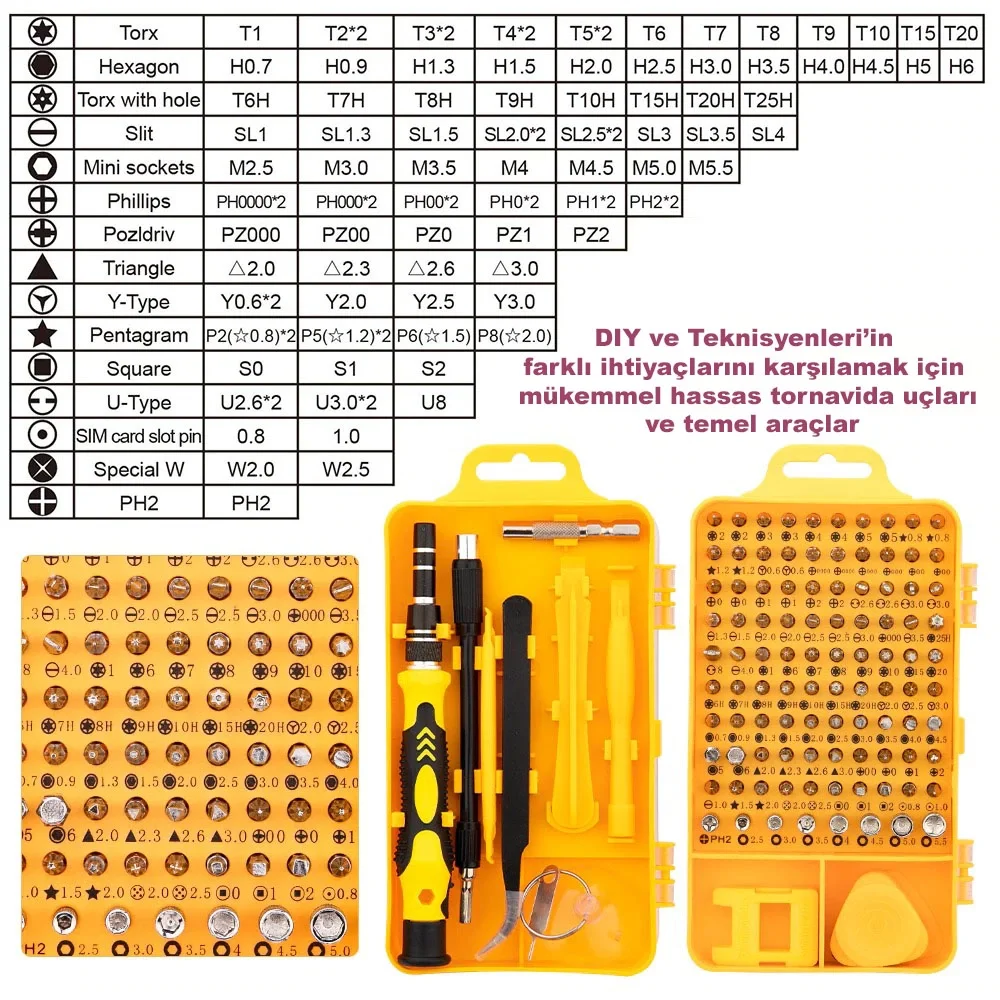 DailyTech 115 in 1 Hassas Sarı Çoklu Tornavida Seti El Alet Takımı