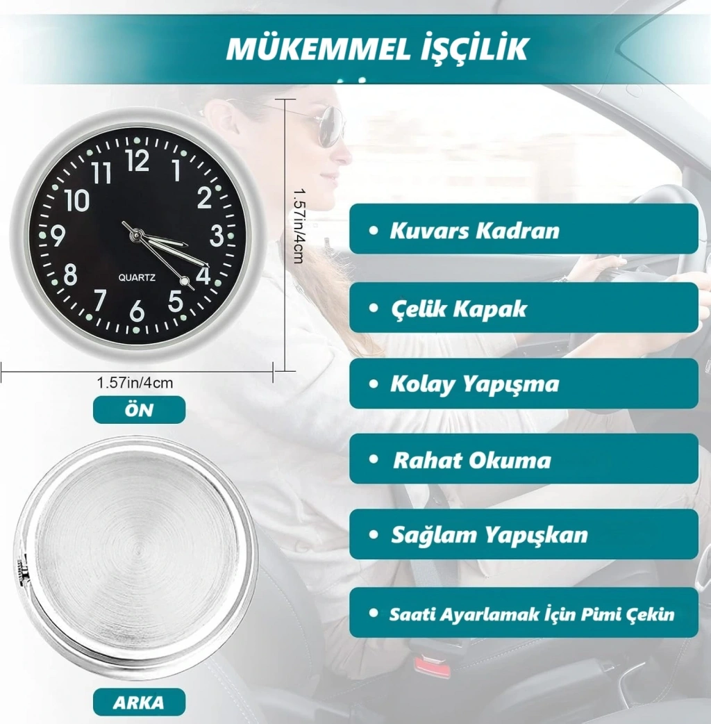 DailyTech Aydınlık Araç Araba Tekne Bisiklet İçin Mini Kuvars Saat - DailyTech - BEYAZ