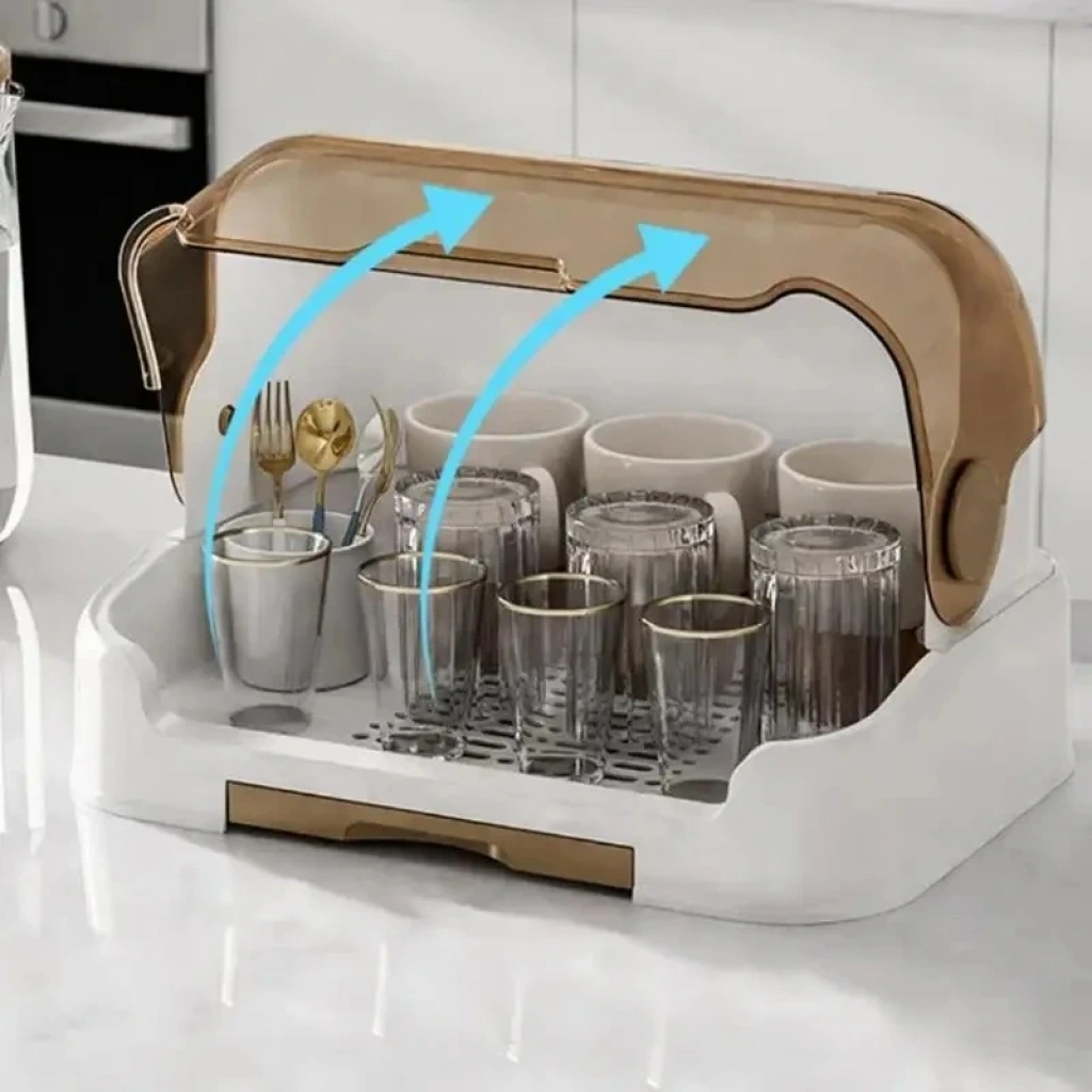 Bu kapaklı biberon ve mutfak eşyası kurutma standı, bebek biberonları, bardaklar, kavanozlar ve diğer mutfak gereçlerini temiz ve tozsuz şekilde saklamanıza yardımcı olur. Şeffaf koruma kapağı sayesinde dış ortamdan toz, kir ve böcek girişini önler.