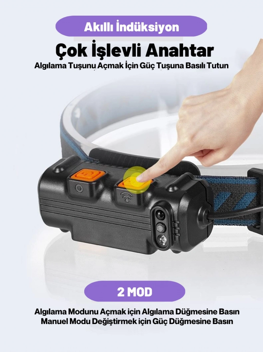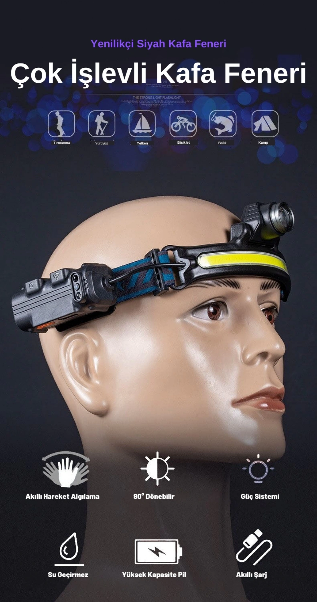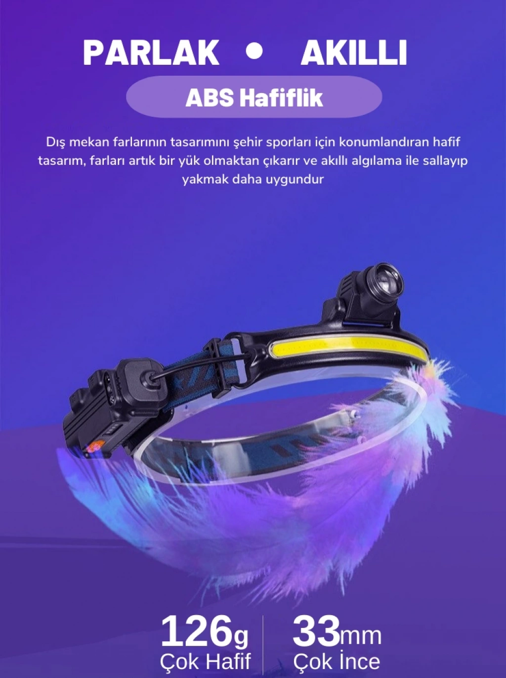 DailyTech Sensörlü LED COB USB Şarlı Kafa Lambası Feneri