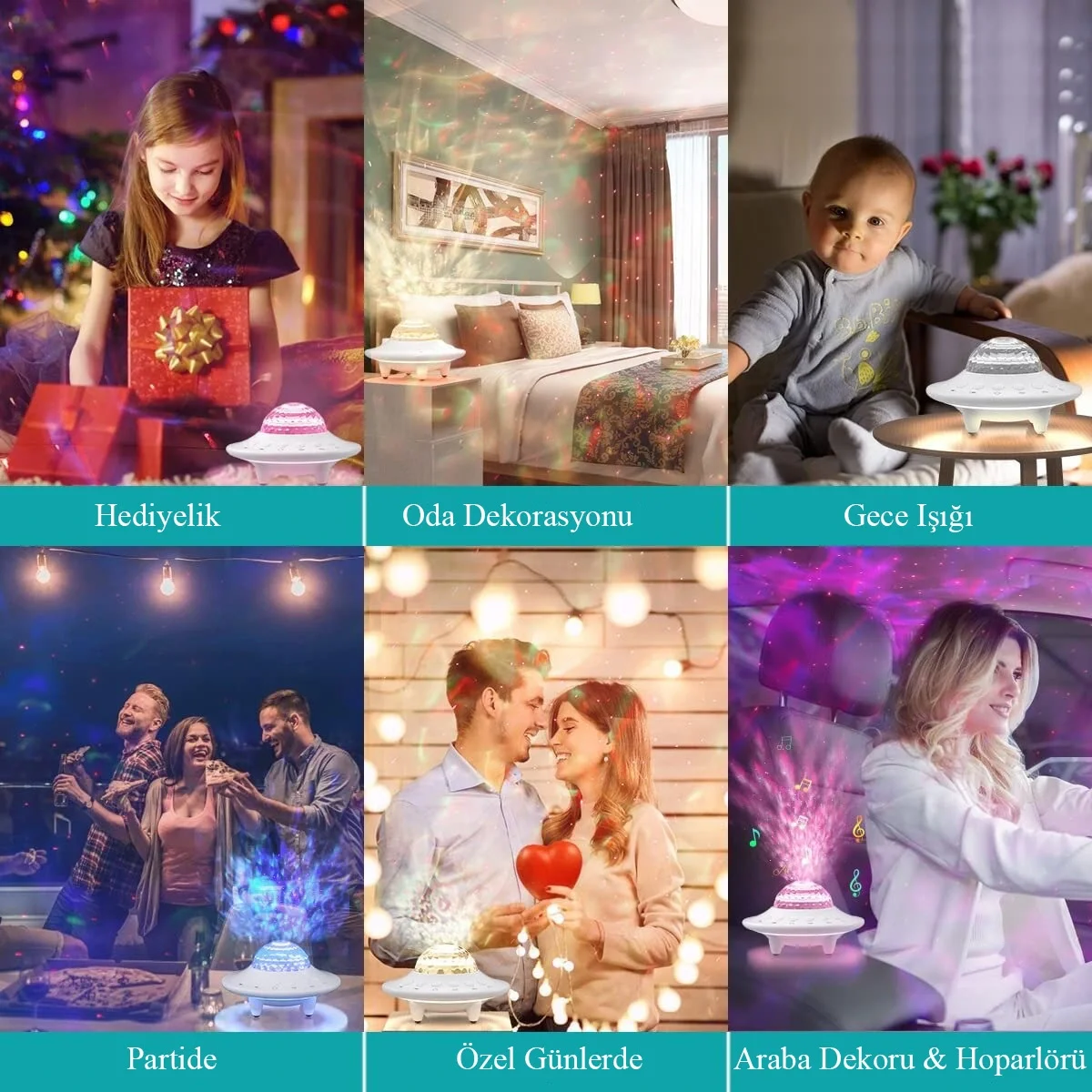 DailyTech Galaxy Projektör Hoparlör Bluetooth UFO Gece Lambası