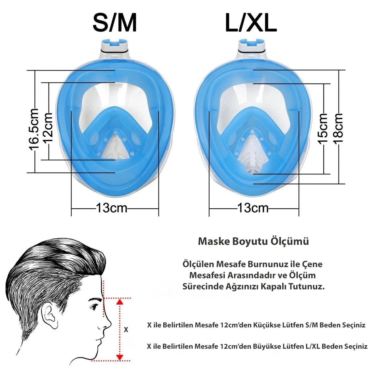 Full face tasarım sayesinde burun ve ağız solunumu daha doğal gerçekleşir, bu da özellikle yeni başlayanlar veya konforu ön planda tutanlar için büyük bir avantajdır. Nefes almayı kolaylaştıran sistem, suyun maskeye girişini azaltırken yüzüstü yüzüş sırasında dahi temiz hava sağlar. Canlı mavi renk, su altı aktivitelerinde estetik ve dinamik bir görünüm sunar.