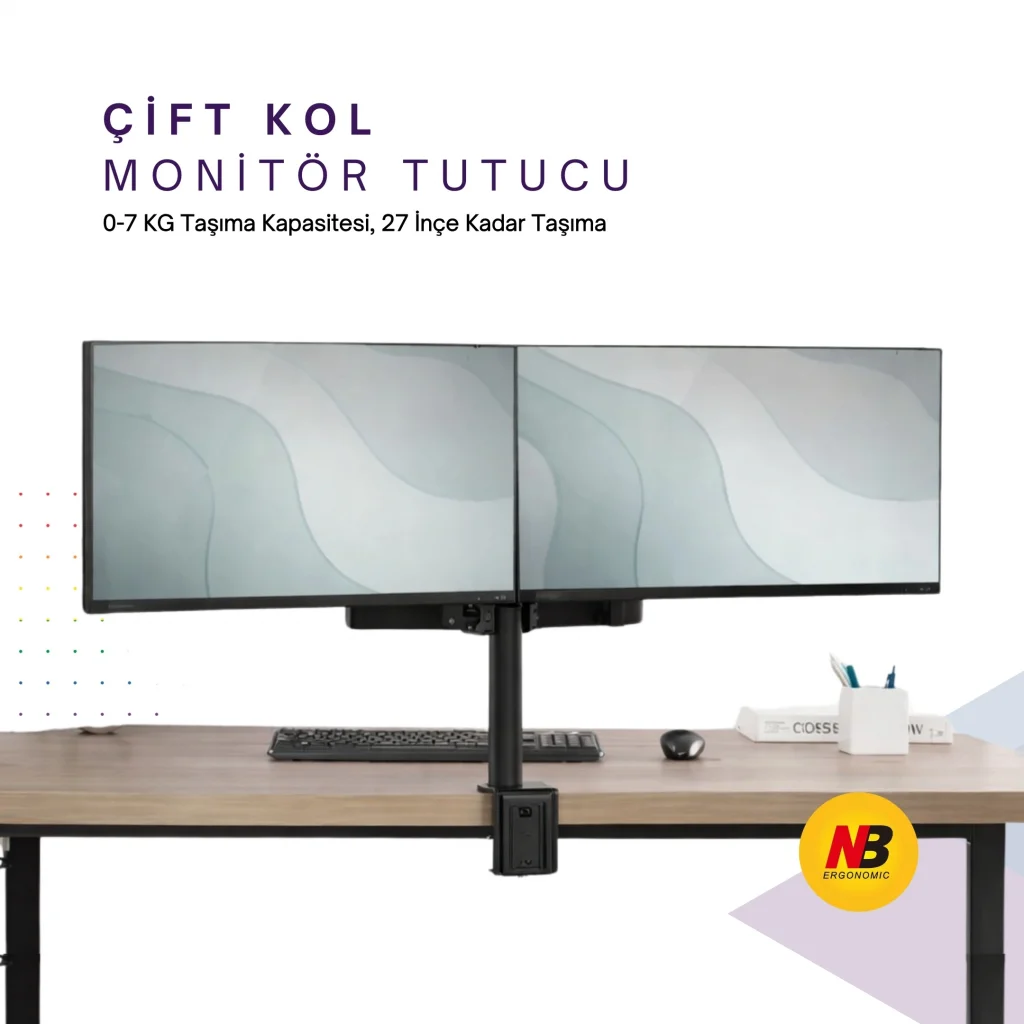 Masaüstü Ayarlanabilir 14-32” Çift Kol Monitör Tutucu, ergonomik tasarımı sayesinde çalışma alanınızı düzenler, boyun ve sırt ağrılarını azaltarak daha rahat bir kullanım sunar. 14 inç ile 32 inç arasındaki monitörlerle uyumlu olan bu dayanıklı çift kol, her biri 7 kg’a kadar taşıma kapasitesine sahiptir.