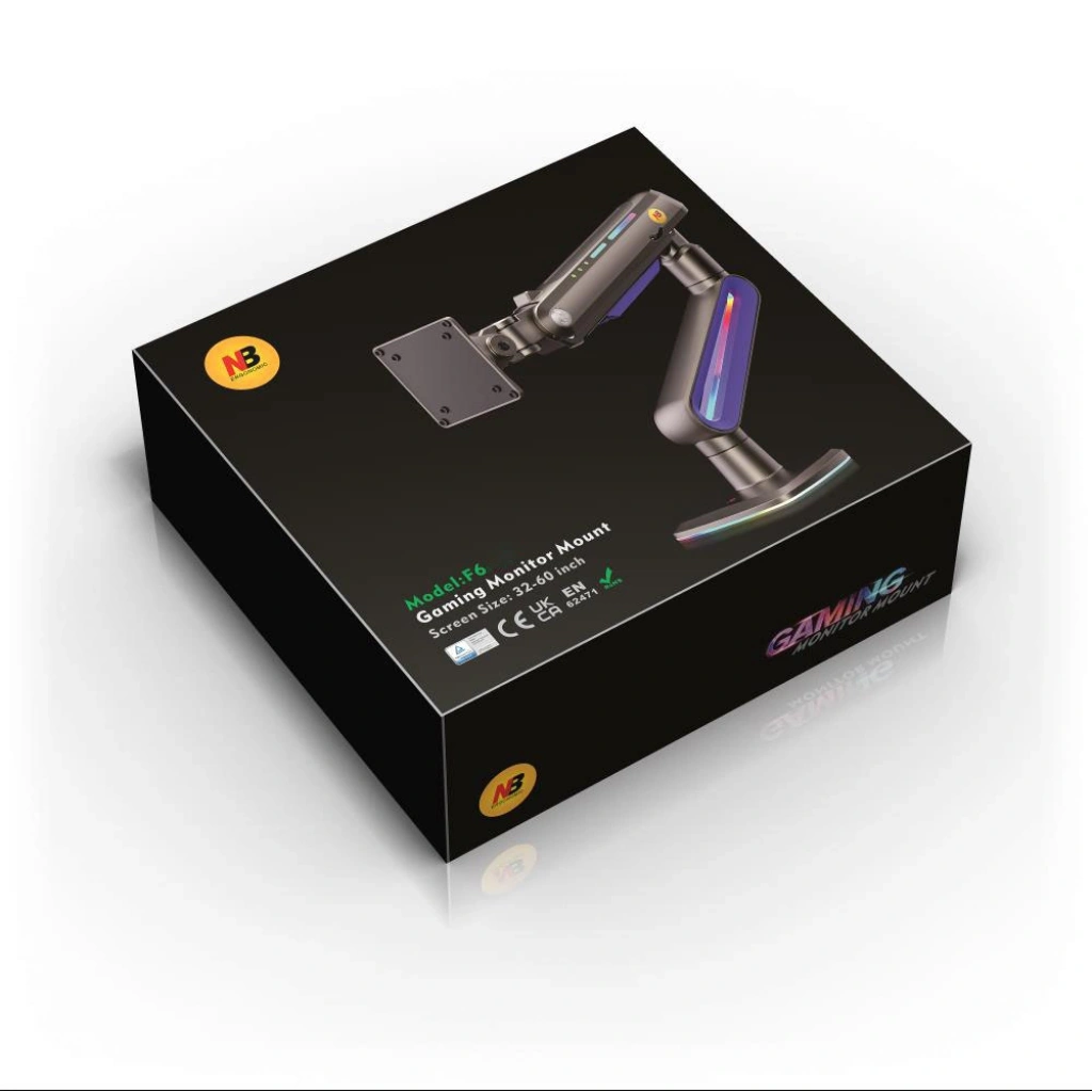 ? ÜRÜN AÇIKLAMASI NB F6, büyük ve ağır monitörler için özel olarak tasarlanmış RGB aydınlatmalı profesyonel gaming monitör koludur.